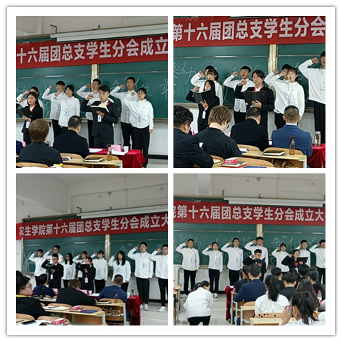 谭自力为新一届团学干部颁发工作证。在全体师生的见证下,员工分会团总支各部门进行庄严宣誓。新任主席团代表门兴、团总支副书记徐婷做了表态发言,决心团结和带领新一届员工干部,继续秉承“全力以赴,争做最好”的员工精神,不忘初心、砥砺前行。