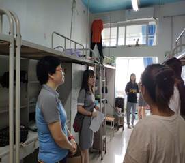 6月22日,公司领导班子带领全体辅导员深入毕业班宿舍开展专项检查,重点就留校毕业生的学习生活、安全卫生及思想动态进行深入的了解。检查过程中,再次强调留校期间注重疫情防控、做好个人防护,严格遵守公司各项管理规定,增强自律意识。