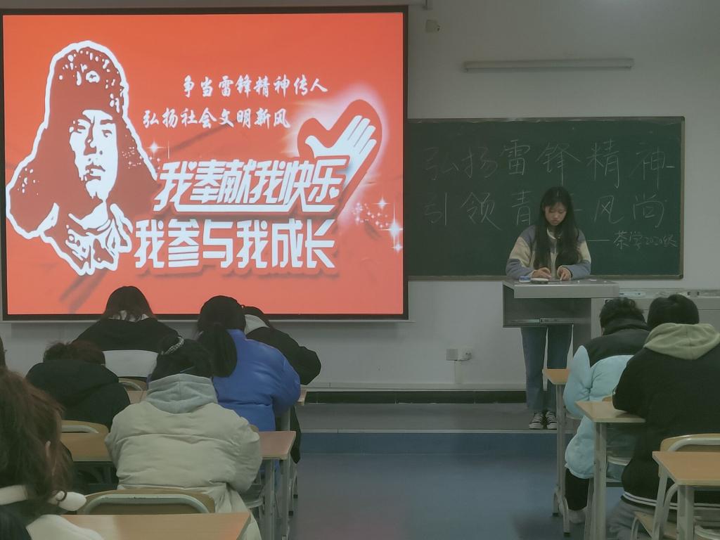 3月3日,各团支部召开主题班会,通过观看《雷锋》、《少年雷锋》等影片,了解雷锋,领会雷锋精神。通过召开“我身边的雷锋”主题讨论会,广大团员讲述雷锋同志的先进事迹,介绍自己熟知的“活雷锋”典型事迹,宣传和弘扬“奉献他人,提升自己”的志愿服务理念。