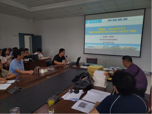 活动开始,由今年申报教育部产学合作项目的李川、段展展和马瑛三位老师分别进行汇报和交流。李川教授结合《数智育种》课程建设,从课程设计,案例教学以及实践操作的组合式教学模式等多角度展示了针对本课程全方位的课程改革理念;段展展老师结合园林虚拟仿真实训中心建设,畅谈《景观设计虚拟仿真实验课》课程建设思路;马瑛老师结合秦巴实验室屋顶温室改造设计方案,建议将光谱调控植物生长实验纳入植物生理实验课程设类实验项目。随后与会老师和三位老师就产学合作项目申报过程中的注意事项、申报书撰写难点的处理方法等细节问题进行了深入细致的交流。最后,杨芳副经理对三位老师的分享交流表示衷心的感谢,强调产学合作,共建课程对于专业建设的重要意义,鼓励BB贝博艾弗森的老师积极进行产学合作项目的申报,为一流专业的建设奠定良好的基础。