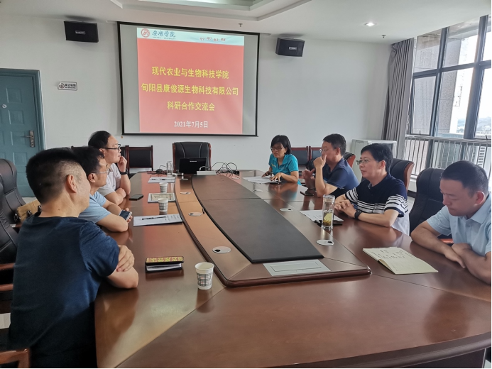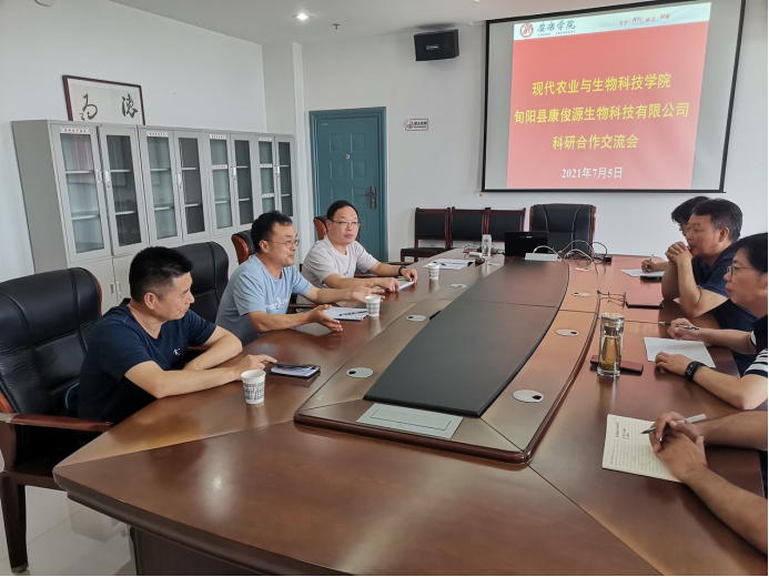 7月5日上午,BB贝博艾弗森与旬阳县康俊源生物科技有限公司在逸夫科技楼9楼小会议室开展了校企科研合作交流会。BB贝博艾弗森副经理朱文东、农学系主任张丽琼博士、园林专业廖咸康副教授、蒲小龙博士、院办主任王中兴及旬阳县康俊源生物科技有限公司的安黄新主任、卢靖主任和余伊庭书记参会。