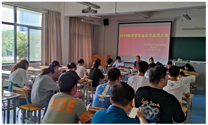 2021年9月3日下午,2022届茶学专业毕业论文动员会在江北1307教室顺利召开,本次动员会由李冬花老师主持,茶学专业谢满超、马瑛、齐玉岗、吴冲老师及2018级茶学专业全体员工参加了本次会议。