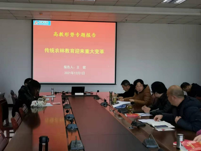 2021年12月3日下午,在江北逸夫科技楼大会议室,BB贝博艾弗森全体教职工开展高教形势专题报告学习活动,本次学习活动由王健经理主持。