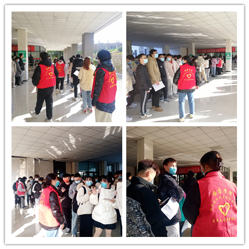 志愿者们准时到达接种点,在医护人员的安排下,明确分工,熟悉流程,各司其职,在预检登记区维持现场秩序、在接种区引导同学们保持间距、在留观区告诉同学们静心等待,使接种疫苗工作井然有序,“小红衣”们忙碌的身影让接种现场充满活力,给冬日的校园增添了一抹亮丽的色彩。