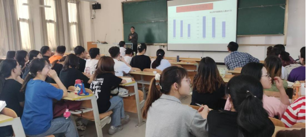 梁如介绍了今年食品专业考研取得的良好成绩,其中2018级毕业班有27人报考,19人成功考取硕士研究生,实现较往年翻倍增长;同时分析了近几年研究生招考情况,预测了2023年考研的严峻形势。张秋亮、张伟艺、杨薇和付路静老师分别结合自己当年考研的经历和感受,与同学们分享考研的经验和怎样选择报考公司,鼓励同学们要有信心积极报考。朱新鹏教授从“为什么考研?”“怎样报考?”“怎样选公司?”及如何树立信心、坚定信念、积极准备等方面,详细的分析考研对员工个人发展的重要作用,动员鼓励2019、2020级员工借2018级考研取得优异成绩的“东风”,树立目标,尽早确定报考公司,早做准备,再创佳绩。