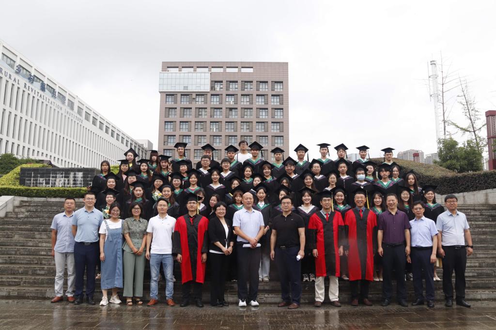 王健、杨松杰、朱新鹏、谢满超、段展展、梁如为获得学士学位的毕业生代表一一正冠拨穗、授证并合影留念。典礼在全体师生的合影下落下帷幕。