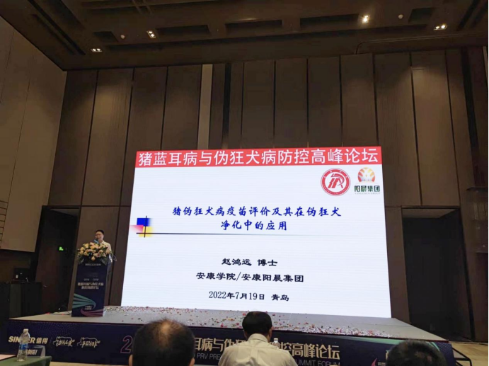 2022年7月19日,“猪蓝耳病及伪狂犬病防控高峰论坛”在山东青岛圆满举办。大会邀请了国内猪蓝耳病和伪狂犬病研究领域知名专家学者,就困扰养猪业多年的蓝耳病和伪狂犬病的防控和相关疫苗研究进展进行技术交流,BB贝博艾弗森教师赵鸿远博士应邀出席本次大会并做了交流报告。