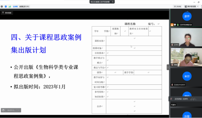 10月16日晚,西北地区生物科学专业虚拟教研室召开在线研讨会议,公司教学副经理杨芳和王中兴老师参加此次在线研讨会议,王中兴老师进行会议发言。
