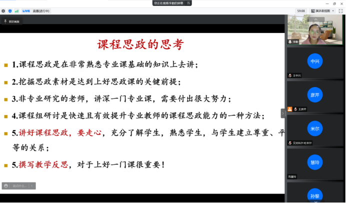 通过此次会议,公司教师分享交流了课程思政建设的经验,学习了兄弟院校的宝贵经验,并积极参与到生物科学专业课程思政建设中,推动了公司生物专业课程思政教学质量的提升。