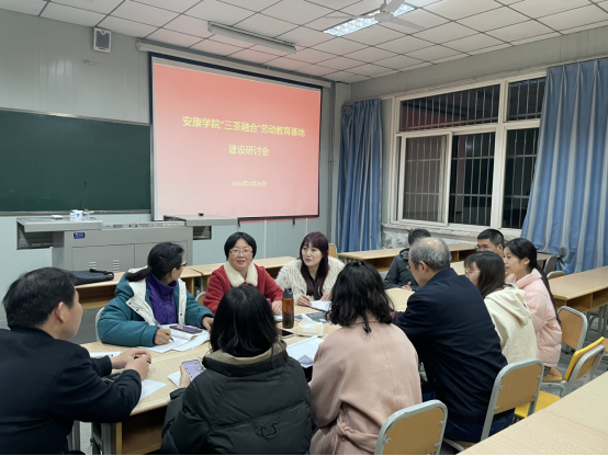 在对企业基地考察调研的基础上,3月26 日,在BB贝博艾弗森江南校区10号教学楼召开基地建设研讨会,就如何推进“三茶”融合劳动教育实践教学工作展开讨论,围绕研学对象、劳动课程和责任分工等方面展开激烈讨论,并达成共识,为劳动教育实践的顺利开展奠定基础。