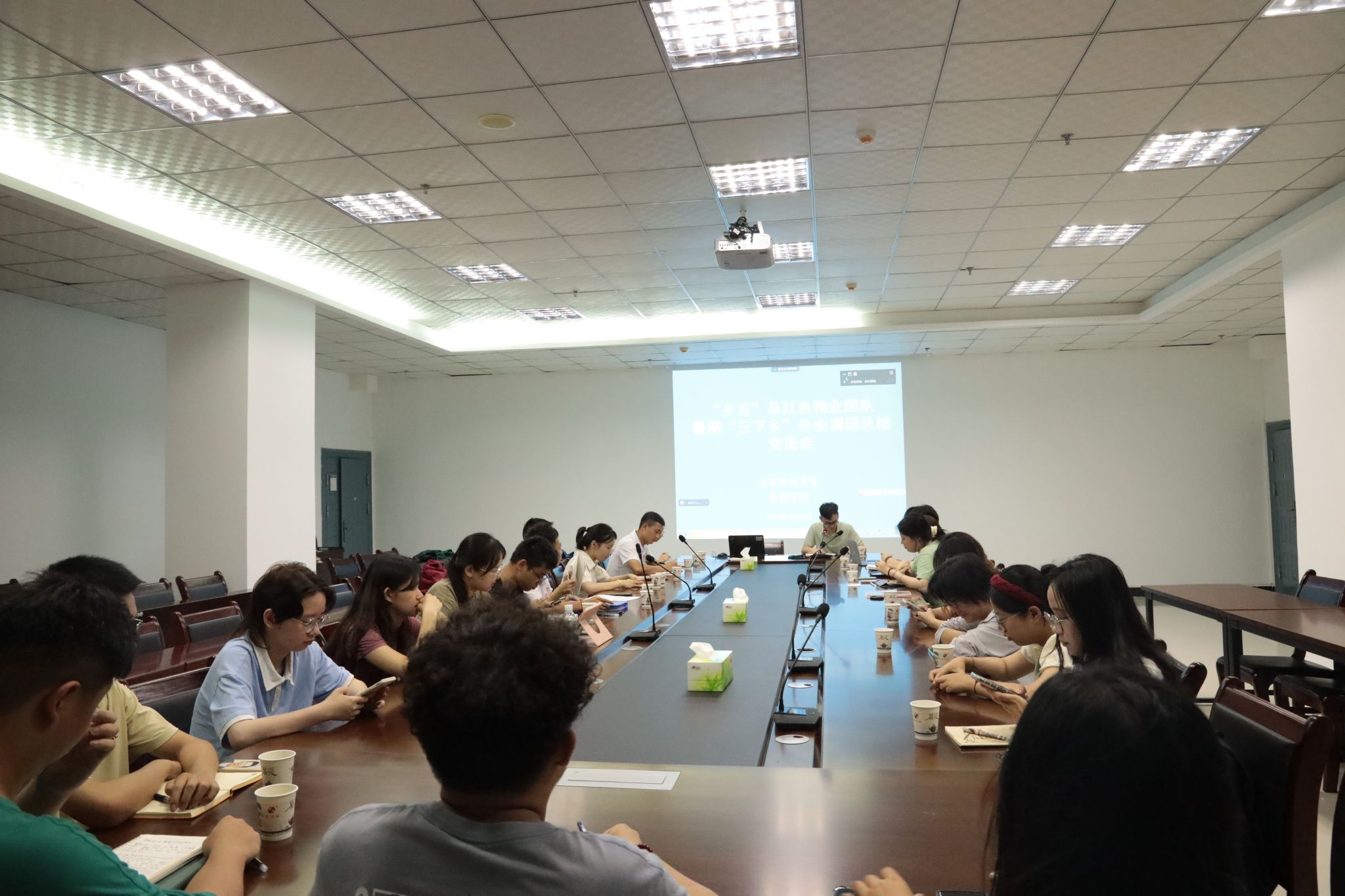 调研前充分蓄能,在安康市住房和城乡建设局建设大厦召开了本次实践活动的首次调研会议。本场会议由安康市政园林处主持,会议明确了本次调研目标,并对本次调研中存在的专业技术操作进行培训。下午,团队按照专业特长分组行动,在城区对百年古树进行实地调研,现场测绘及景观节点设计。