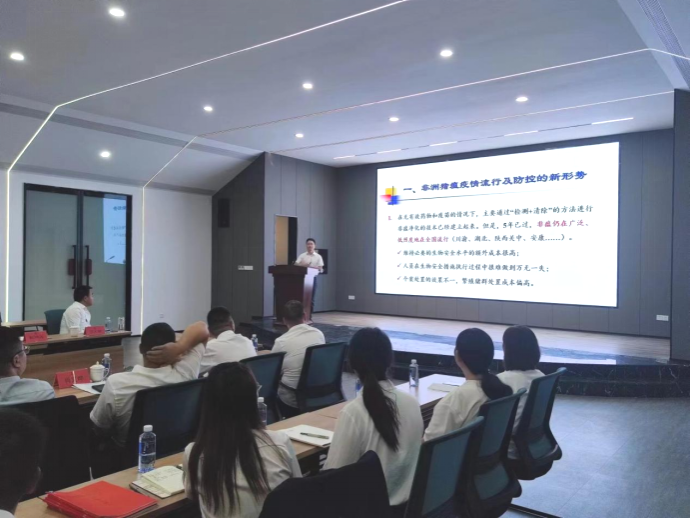 赵博士以“严防死守,打赢非瘟防控保卫战”为题目,首先介绍了当前阶段我国及陕西省非洲猪瘟疫情的形势与流行新特点,然后,结合晨润公司的实际情况,对防控非洲猪瘟的关键环节一一进行了详细的讲解,最后与参会的技术人员进行了深入的交流。