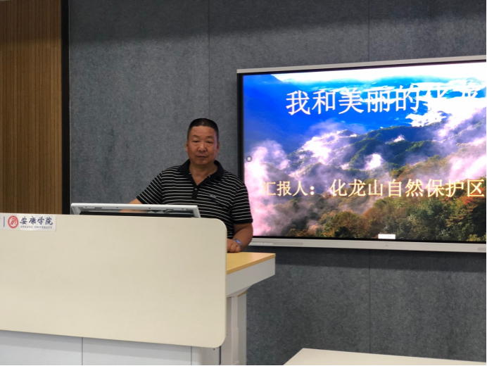 首先,刘平工程师以“我和美丽的化龙山”为主题,结合自多年以来己在野外植物调查、识别与鉴定等方面的一线工作经验,分享了他在植物分类研究上的心得以及主要成果,讲述了他学习植物分类学的缘起和不断深入研究的历程,并展示了他发现的新物种、新记录以及珍稀濒危植物的照片,讲述了每种植物的发现过程和识别鉴定的趣事,并与现场师生进行了现场互动交流。