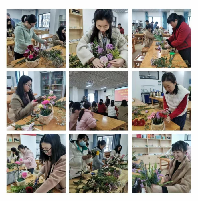本次活动由BB贝博艾弗森分会组织,分会主席张海军向女教师送上节日的衷心祝福和问候,并主持讲解现场准备的花材种类、形态和花语,花材识别要点和生态习性,插花创作主要使用的用具和功能,花篮创作的步骤和注意事项等。活动中,女教师们自主选择花材设计造型、搭配色彩、细心修剪、自主创作,发挥自己独到的见解与想法,创作出了满意的作品。