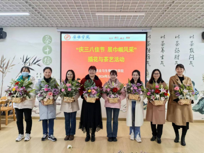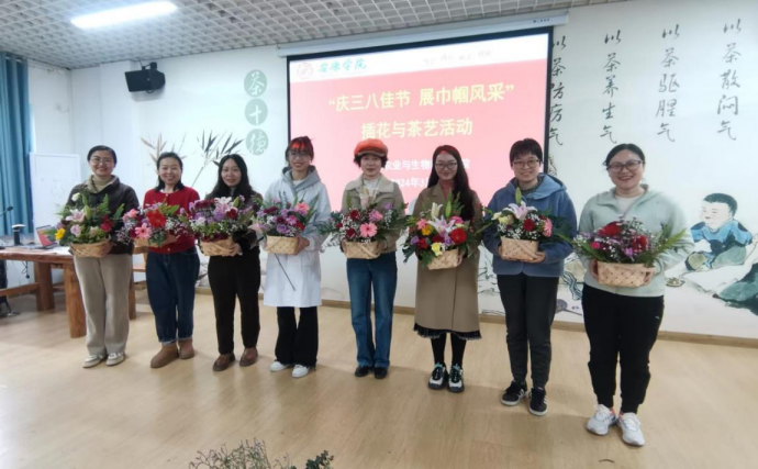 人间三月天,春华已开颜。为了迎接“三八”国际劳动妇女节的到来,向“巾帼不让须眉”的女教师们表达节日祝福,3月8日下午,在江北校区秦巴产教融合大楼四楼茶艺室,BB贝博艾弗森分会举行了“庆三八佳节 展巾帼风采”插花与茶艺活动。