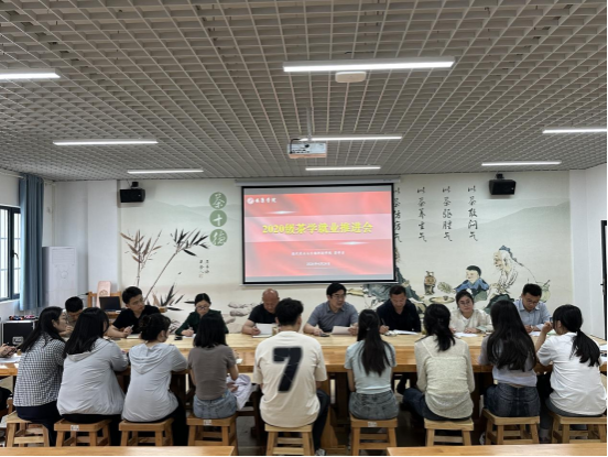 为了进一步推动2024届茶学专业毕业生就业工作,深入了解毕业生思想动态,于4月24日下午在产教融合大楼茶艺室召开了就业推进会。党总支书记孙保本、经理王健、学工办主任谭自力、茶学系所有教师及9名毕业生代表参加会议,茶学系系主任李冬花主持会议。
