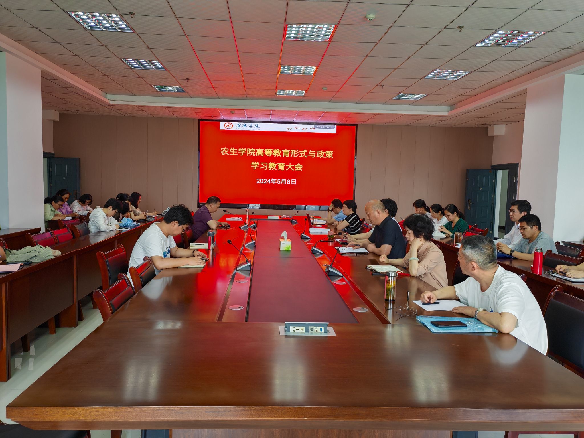 5月8日下午,公司召开高等教育形势与政策理论学习会议,旨在提高全院教职工对当前教育形势的认识,并深入领会习近平总书记关于教育家精神的重要论述。会议由党总支书记孙保本主持,全院教职工参加。