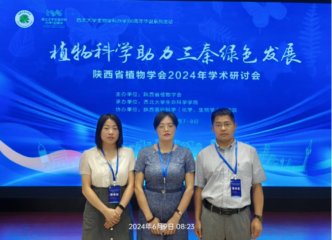 6月8日—9日,陕西省植物学会2024年学术研讨会在西北大学召开,今年的大会主题为“植物科学助力三秦绿色发展”。有来自省内高校及研究院所230余位会员及师生代表参加了本次研讨会。公司教师胡凤莲、何斐、张海军3人全程参加了学术研讨会的交流学习。
