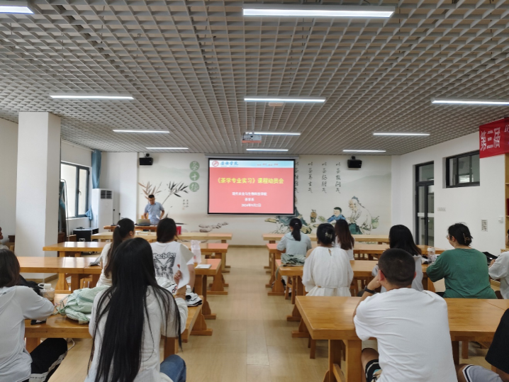 9 月 2 日,茶学专业2021级《茶学专业实习》课程动员会在产教融合大楼414举行,茶学专业教师齐玉岗及茶学2021级全体同学参加动员会。