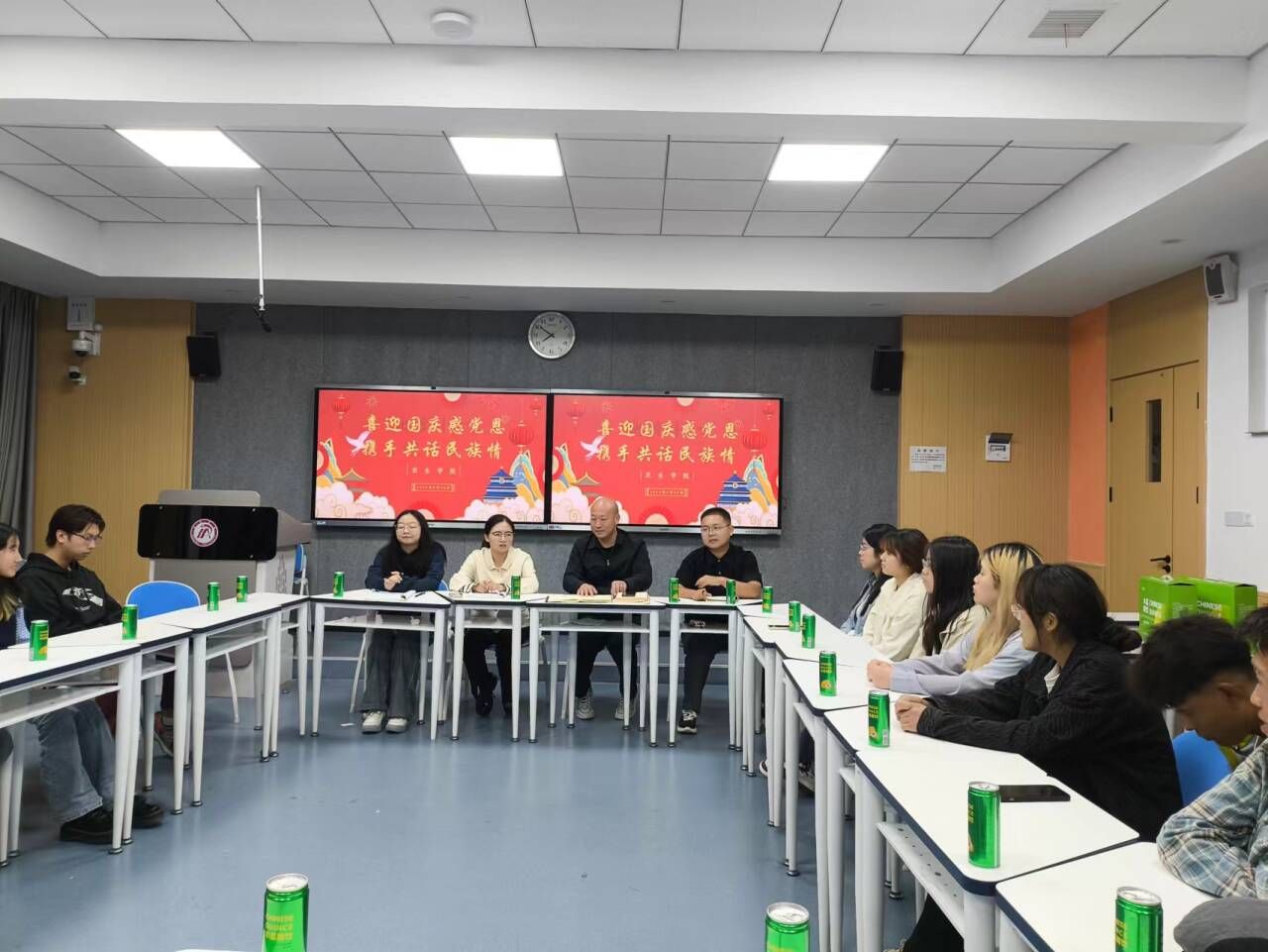 为热烈庆祝新中国成立75周年,持续巩固和铸牢中华民族共同体意识,深化民族团结进步教育,促进各民族员工的交流与融合,9月30日晚19:00,BB贝博艾弗森在一号教学楼1221教室召开“喜迎国庆感党恩,携手共话民族情”少数民族员工座谈会,党总支书记孙保本,团总支书记郭杨娟,辅导员老师邓子序、祝志一参加。