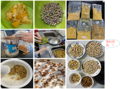 本次课程实习主要包括三方面实践训练内容,分别是焦糖制备、检测以及性质分析,牛乳中酪蛋白、乳蛋白素提取制备以及银杏叶总黄酮的提取及含量检测和银杏果功能食品创新研发。