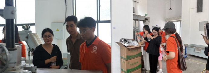 随后,在汉水韵茶业有限公司,团队观摩名优绿茶全自动化加工流程,从鲜叶处理到成品包装全程学习。厂长王伟详解了工艺参数控制要点,特别介绍了"陕茶1号"原料的加工特性及技术要点。同学们参与揉捻、做形等操作,体会科技对产业升级的推动作用,并结合专业为企业发展提建议。