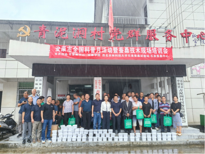 9月11日,由公司陕西省蚕桑重点实验室同西北农林科技大学蚕桑技术服务团、安康市蚕桑产业发展中心、石泉县蚕桑发展服务中心等单位共同举办的安康市全国科普月活动暨蚕桑技术现场培训会在石泉县青泥涧村举行,公司刘强教授、彭云武研究员、孟刚博士和凌君老师参加了相关活动。培训会向当地蚕农讲述了桑病防治、秋季养蚕注意事项、小蚕共育技术等,并向中原镇、池河镇的蚕农发放了病虫害防治药品、桑园管理肥料和技术培训资料。