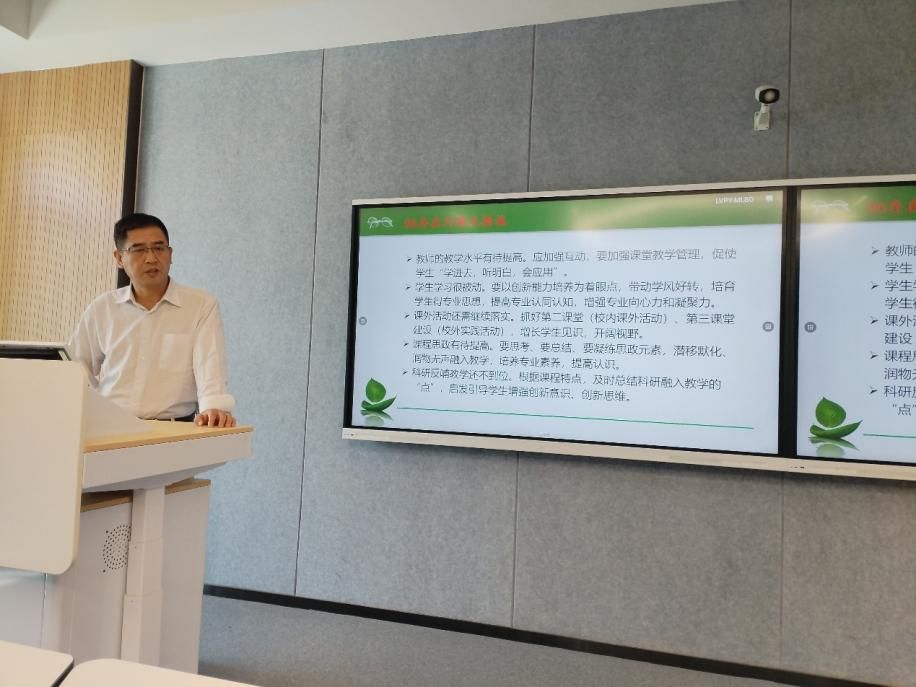 专业负责人朱新鹏教授,不仅分享了自己的在所授课程方面的思考,还分享了他作为公司教学督导,发现的普遍性问题,提醒我们专业教师对照反思。比如针对我们员工的学习特点和公司办学定位,在教学过程中,尽量避免过多的篇幅放在理论讲述,朱老师认为以培养应用能力为主,避免枯燥的理论讲述,以应用为突破口,降低员工畏难情绪,激发员工学习热情。思政教育融入课程要润物细无声,太刻意反而不能达到目标。