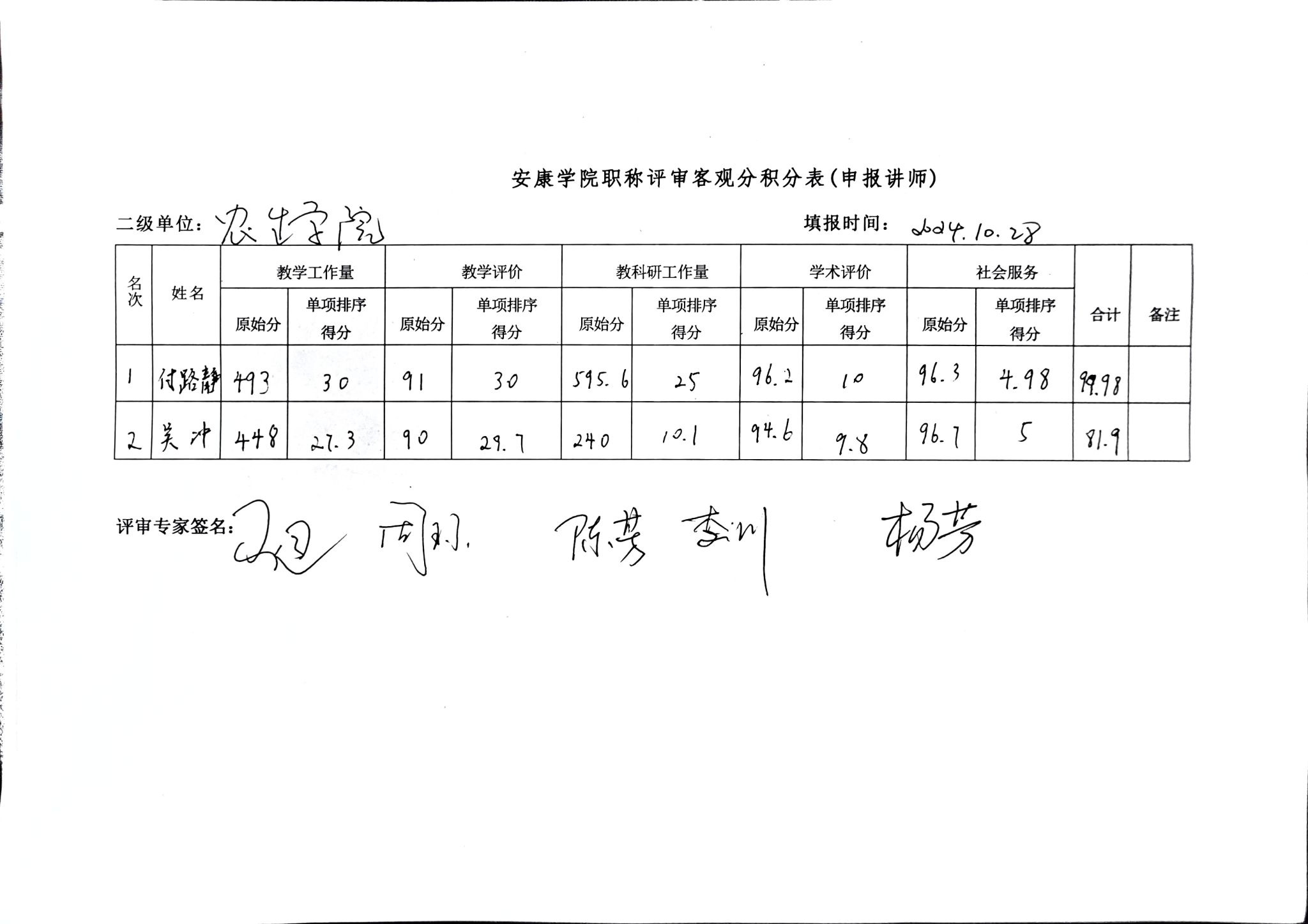 现将BB贝博艾弗森2024年讲师职称评审客观分积分表予以公示,公示期2024年10月27日-29日,公示期间如有异议,请向BB贝博艾弗森专业技术职务评审工作组反映。