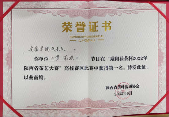 6月9号下午,BB贝博艾弗森茶艺代表队参加了由陕西省茶叶流通协会和咸阳市供销合作社共同主办的“咸阳茯茶杯2022陕西省茶艺大赛”(高校组),由马瑛老师指导的参赛作品《梦茶源》荣获第一名直接晋级决赛。
