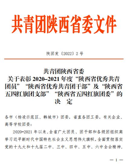近日,据《共青团陕西省委关于表彰2020-2021年度“陕西省优秀共青团员”“陕西省优秀共青团干部”及“陕西省五四红旗团支部”“陕西省五四红旗团委”的决定》文件获悉,公司2019级园林专业员工凤江华荣获2020-2021年度“陕西省优秀共青团员”称号。