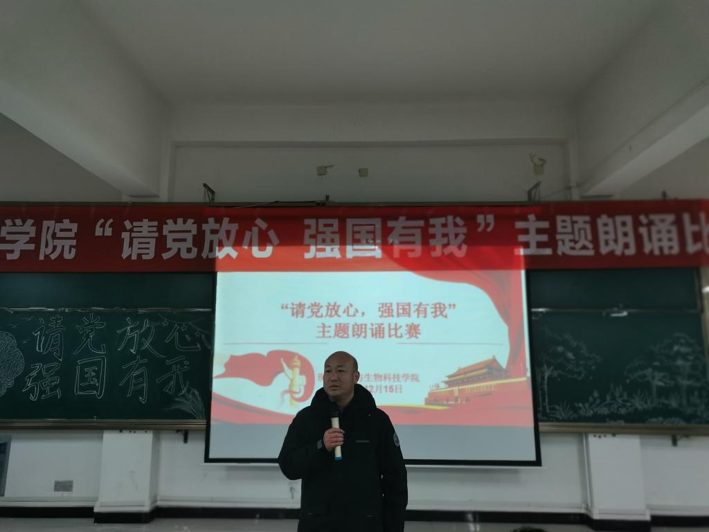为深入学习贯彻习近平总书记“七一”重要讲话精神,践行“请党放心,强国有我”的青春誓言,12月15日,BB贝博艾弗森“请党放心,强国有我”主题朗诵比赛在1304教室隆重举行,公司党总支书记孙保本,学工办主任谭自力,团总支书记张伟艺,辅导员金清民、杨曼及200余名员工参加。