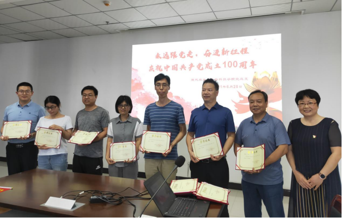 党总支副书记、经理王健向“光荣在党30年”老党员杨松杰同志,“光荣在党20年”老党员袁海龙、朱新鹏和张纪生同志颁发荣誉证书并敬献鲜花。党总支统战委员、副经理杨芳为2020年度党员民主评议“优秀”党员常权记、谭自力、王中兴、张丽琼、段展展、李冬花、赵鸿远和张伟艺等同志颁发荣誉证书。
