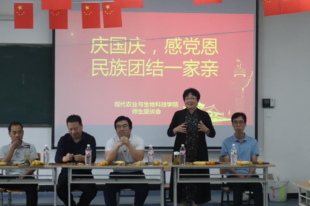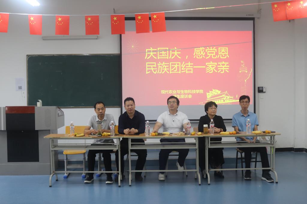 为激励农生学子与祖国共成长,厚植爱国爱党情怀,国庆节当日上午,BB贝博艾弗森在1221教室开展“庆国庆、感党恩,民族团结一家亲”师生座谈活动。来自山东、四川、广西、西藏等省市40余名同学参加了座谈会。经理王健、副经理杨芳、办公室主任王中兴及辅导员莅临现场进行了交流。辅导员杨曼主持活动。