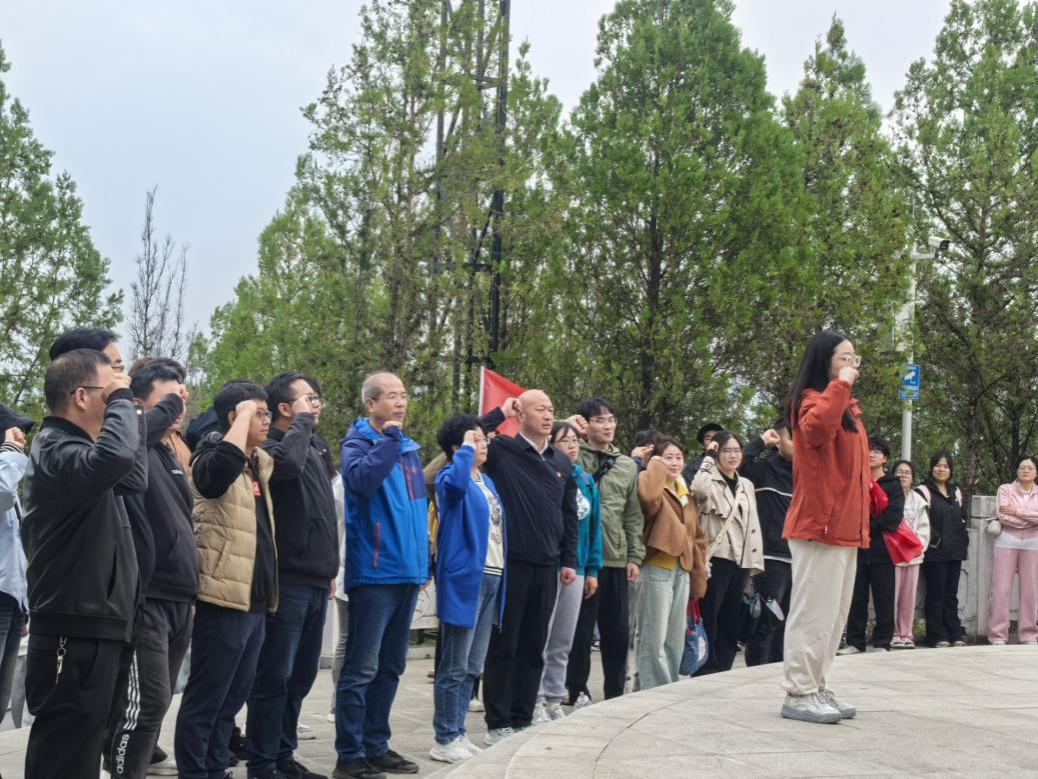 在瞻仰结束后,孙保本为师生党员们上了一堂别开生面的党课,从党日活动的主题切入,缅怀革命先烈们的丰功伟绩,学习他们不怕困难、甘于牺牲、敢于斗争的革命精神,激励各位党员同志要铭记历史,崇尚英雄,尊重英雄,争做英雄;在公司迎接本科公司产品评估的关键节点上,充分发挥“两个作用”,立足岗位,敬业奉献,勇建新功。全体党员在员工党支部书记邓子序老师的带领下重温了入党誓词。