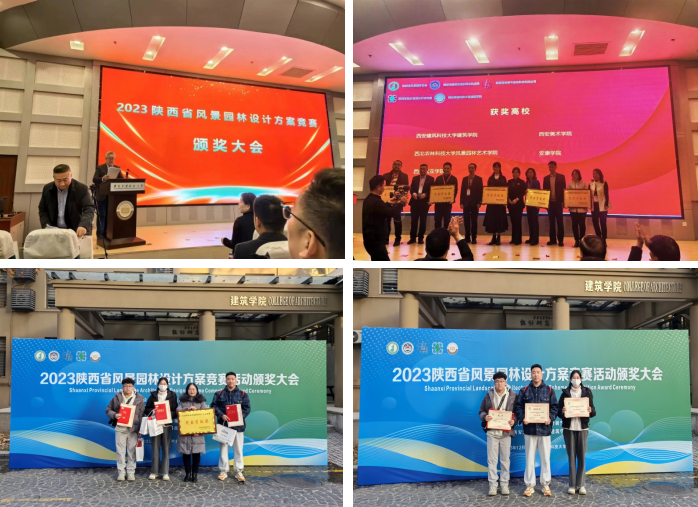 2023年12月2日,公司园林系教师张桂粉,员工赵振豪、李佳怡和韩乐天参加了在西安市建筑科技大学工科楼1楼报告厅举办的“陕西省第一届风景园林设计方案竞赛颁奖大会”。