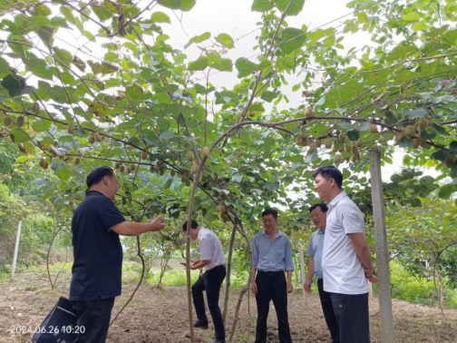 6月26日,在坝河镇镇党委书记鲁波、副镇长李振界、镇林业站长柯刚陪同下,公司教师沈大刚副教授到坝河镇寺姑村指导猕猴桃树夏季管理和病虫害管理技术。